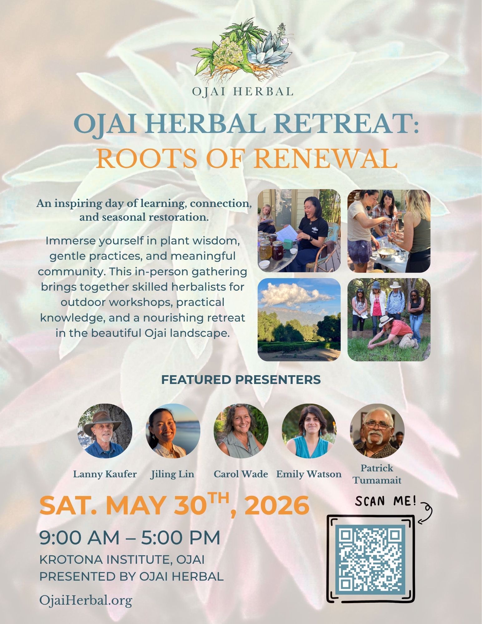 Get ready to immerse yourself in plant wisdom, gentle practices, and meaningful community. This in-person gathering brings together skilled herbalists for outdoor workshops, practical knowledge, and a nourishing retreat at one of the most peaceful and spiritual places in the beautiful Ojai landscape.