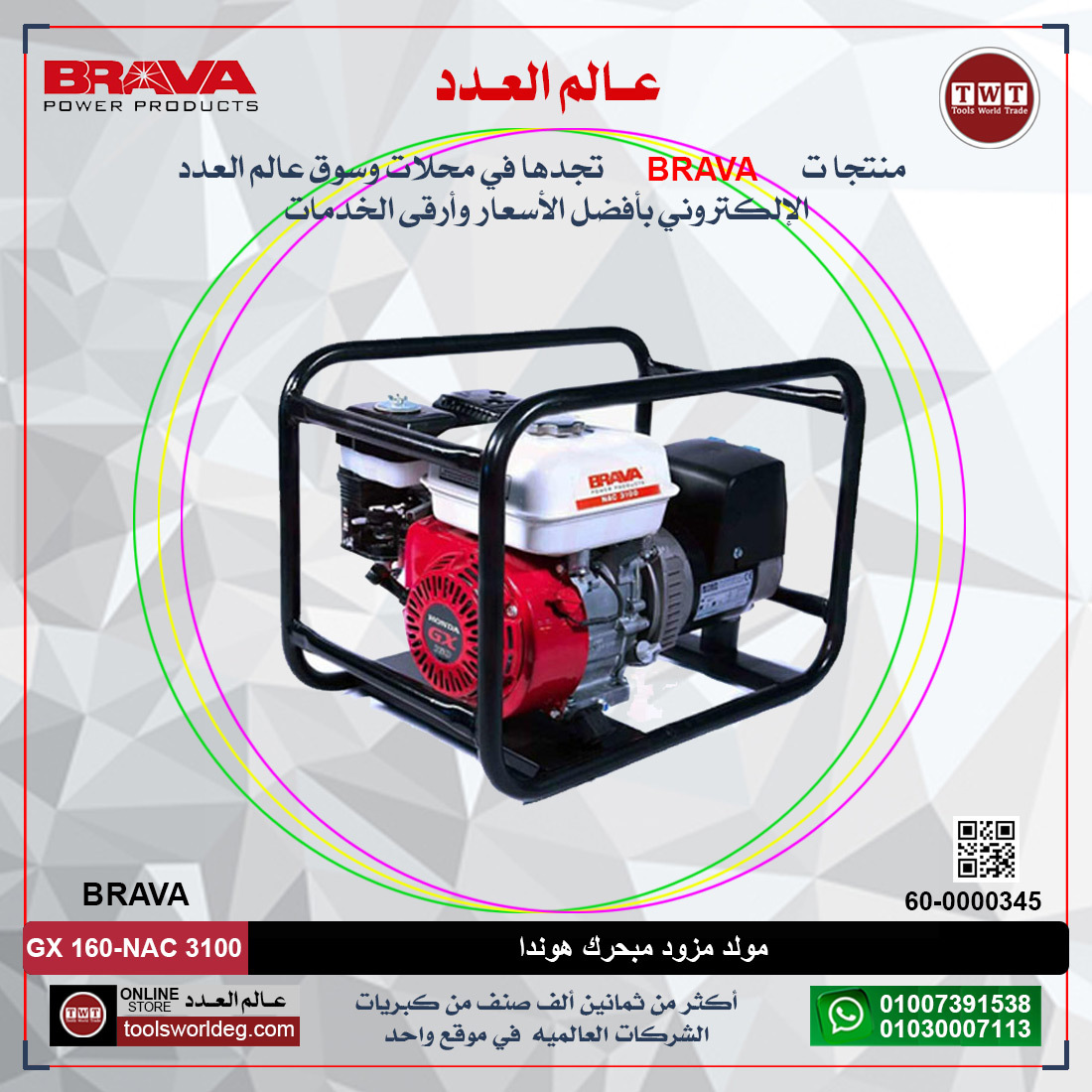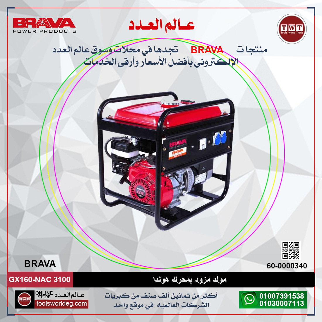 مولد مزود بمحرك هوندا طراز BRAVA GX160-NAC 3100