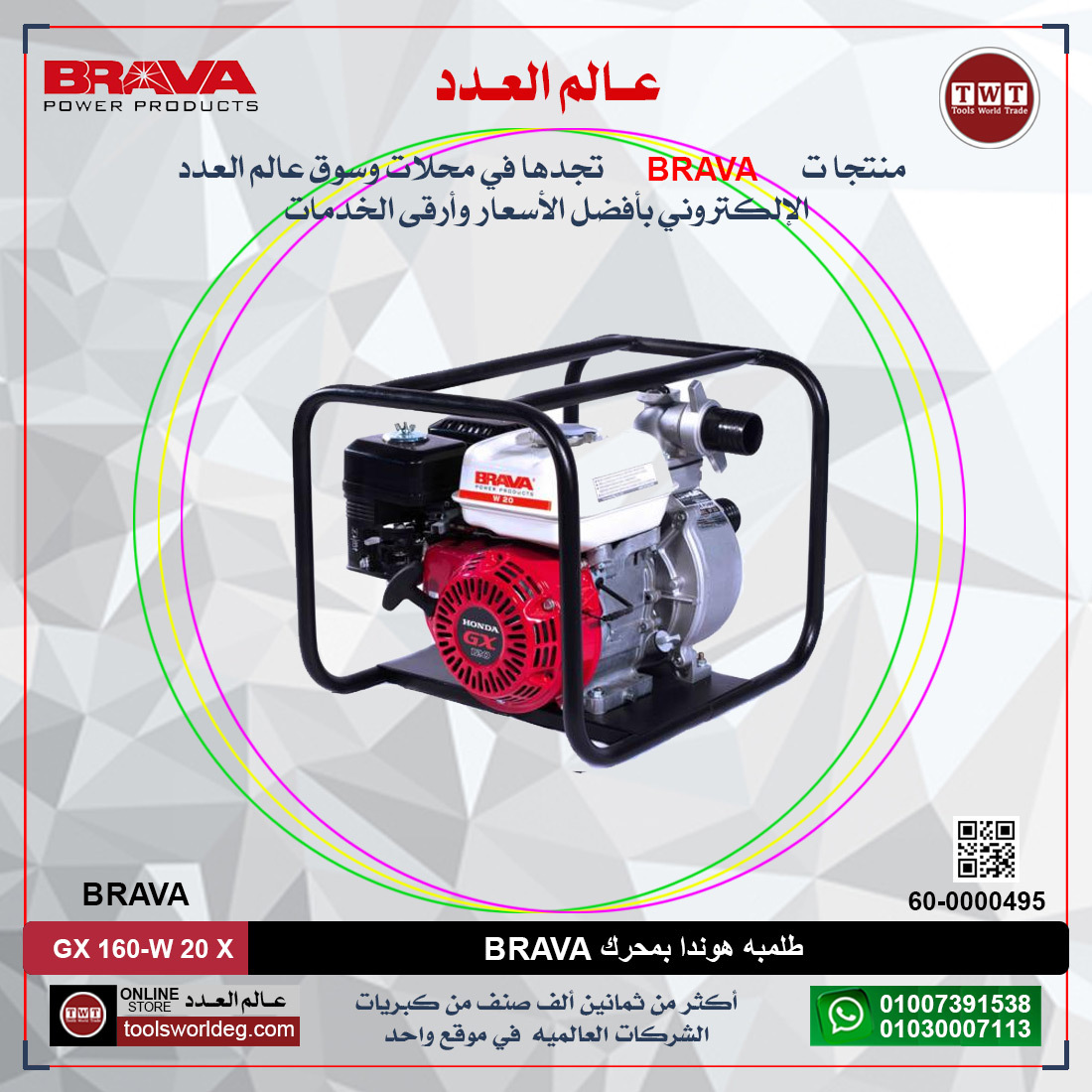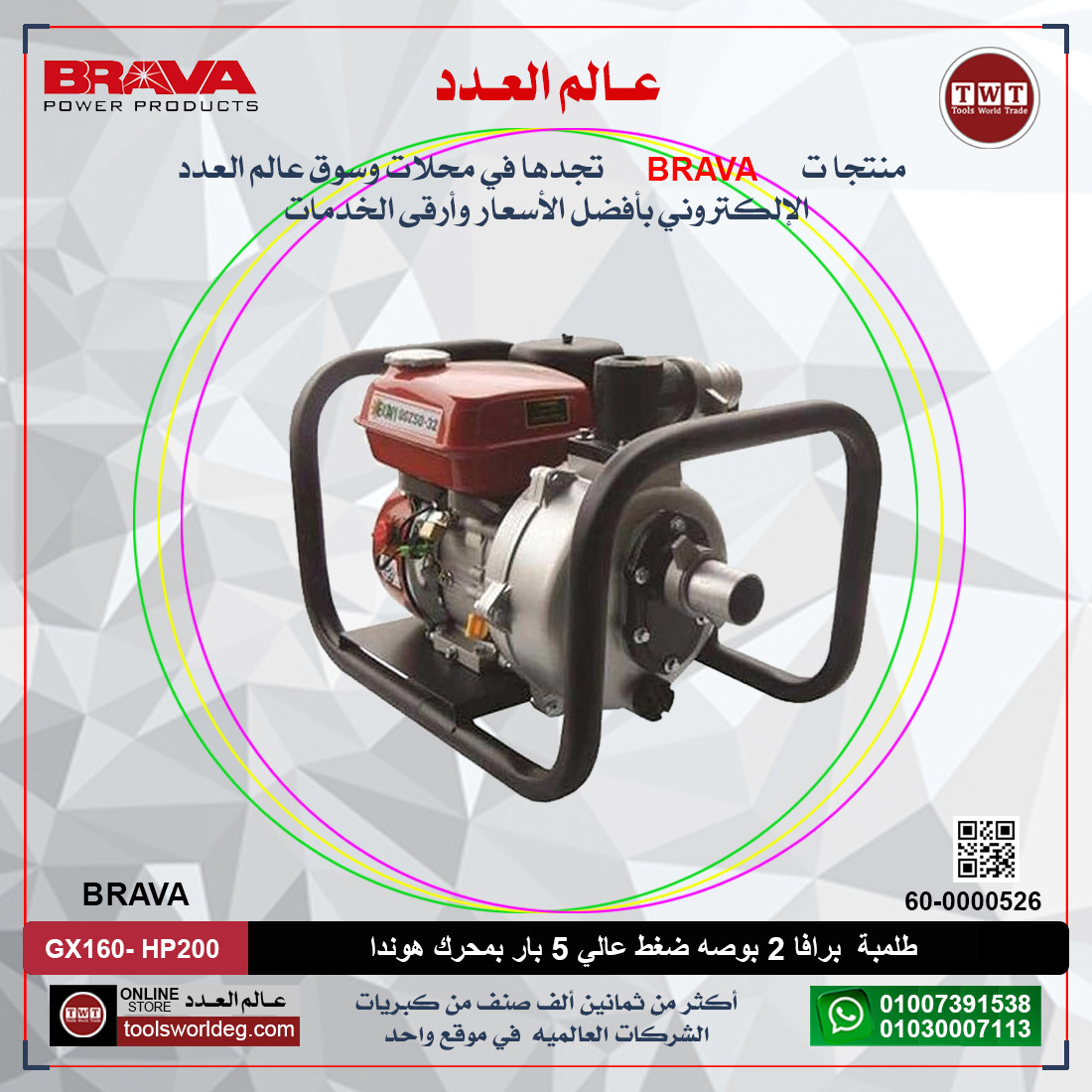 طلمبة برافا 2 بوصه ضغط عالي 5 بار بمحرك هوندا BRAVA GX160- HP200