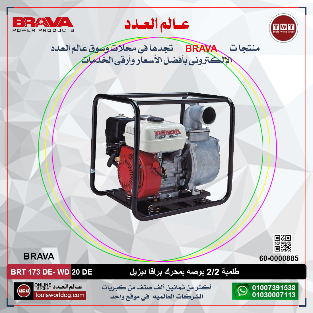 طلمبة 2/2 بوصه بمحرك برافا ديزيل BRAVA BRT 173 DE- WD 20 DE