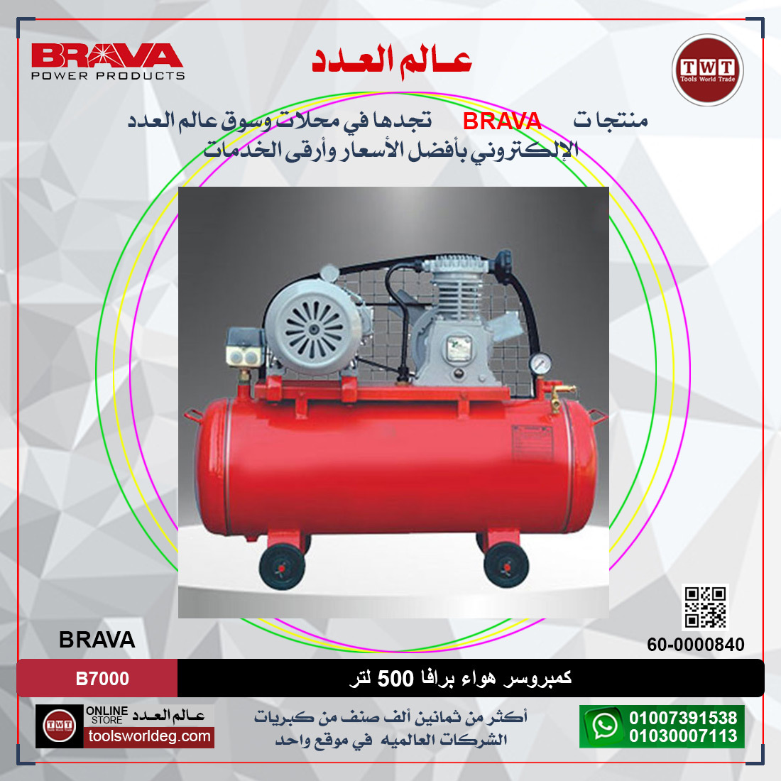 كمبروسر هواء برافا 500 لتر BRAVA B7000