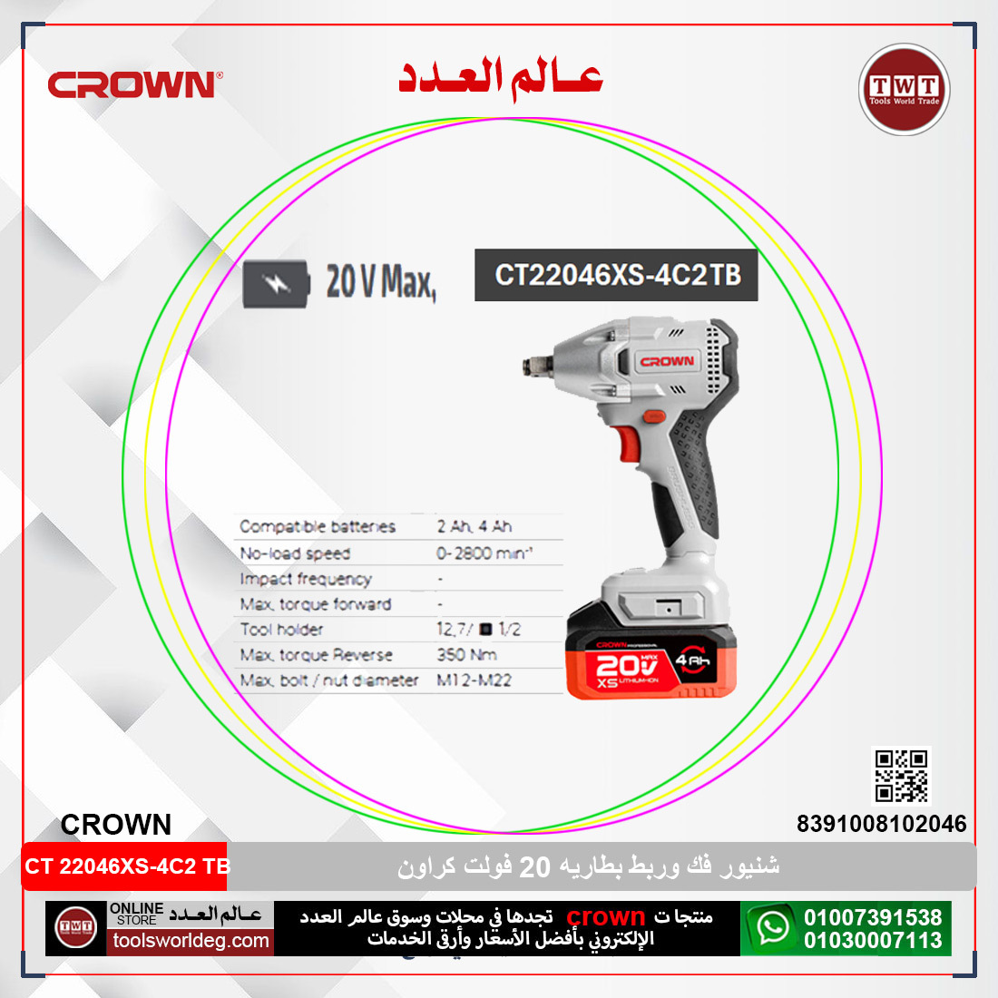 شنيور فك وربط بطاريه 20 فولت كراون CROWN CT 22046XS-4C2 TB