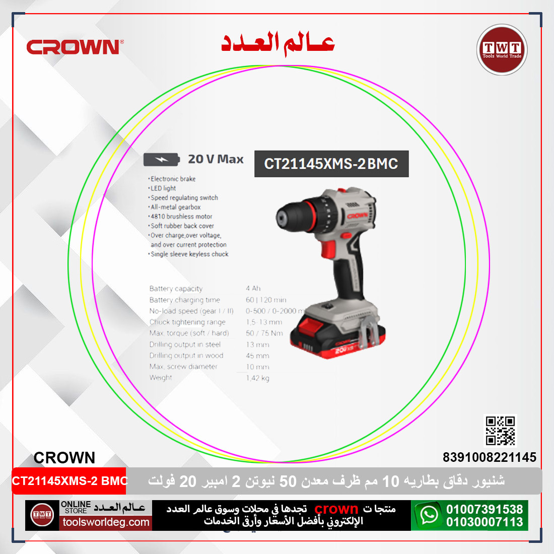 شنيور دقاق بطاريه 10 مم ظرف معدن 50 نيوتن 2 امبير 20 فولت شنطه بلاستيك كراون