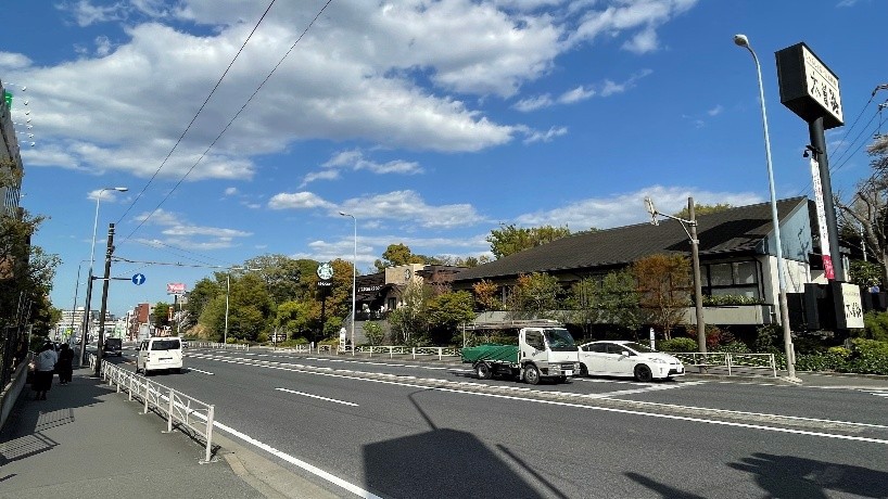 かつては緑の多い地域でしたが、国道工事で開削され緑は失われ、大きな看板が並ぶ道となってしまい、何とか緑豊かなまちを取り戻したいとの思いから、高田さん所有地の店舗開発の際に既存樹木の保存など環境への配慮を要望し、それが実現されました。