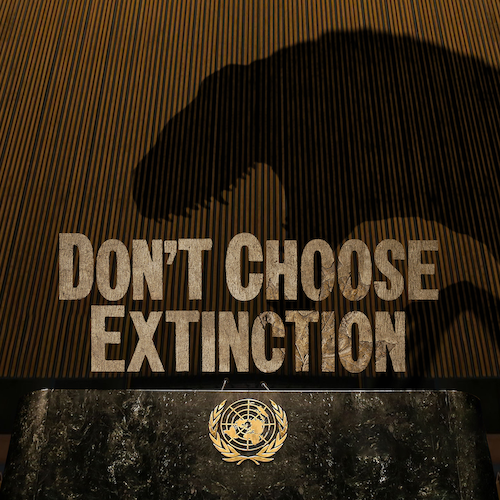「Don’t Choose Extinction (絶滅を選ぶな)」と恐竜が国連で呼びかけ