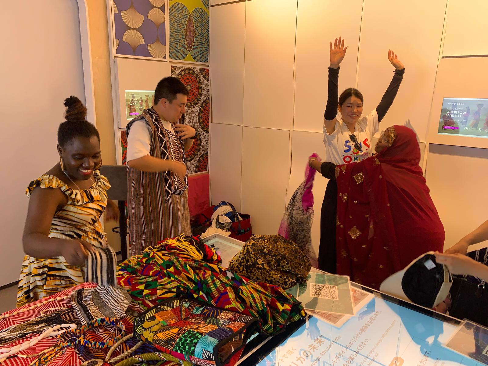 8月には同時期に横浜で開催された第9回アフリカ開発会議(TICAD9)と連動し、Africa Weekが開催。小学生がアフリカの子どもたちに向けて描いた「未来をつなぐ絵手紙」プロジェクトや生成AIとアフリカンプリントを組み合わせた「未来ビジュアル」体験、そしてアフリカの伝統衣装の試着体験等を通じて、言葉や国境を超えて、共に未来を描く"希望の空間"を生み出しました。 |