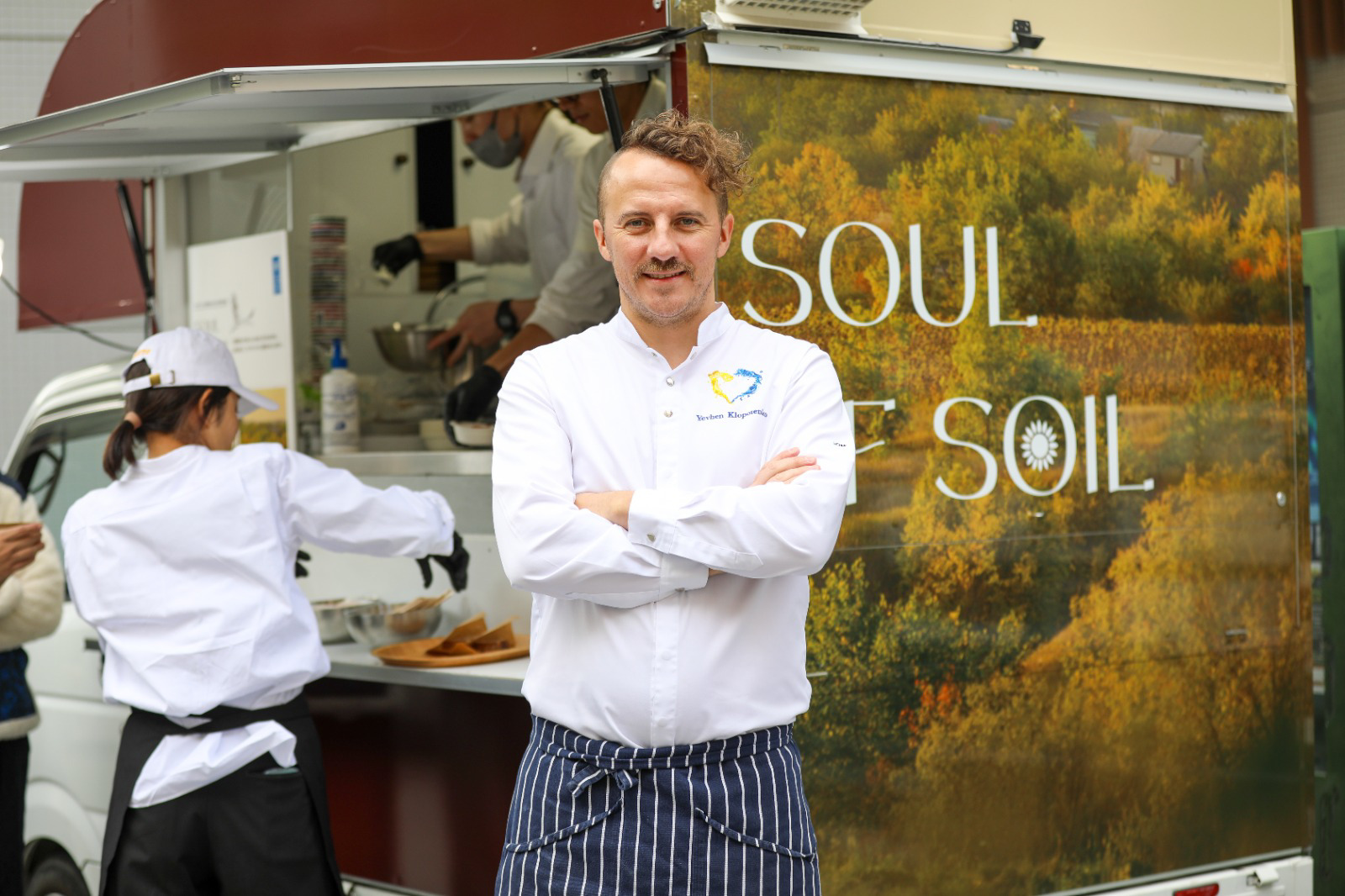 UNDPが開催したサイドイベント Soul of Soilでは、ウクライナの伝統料理「ボルシチ」を提供。クロポテンコ・シェフが、地雷除去された農地で育った食材を使って心を込めて調理。