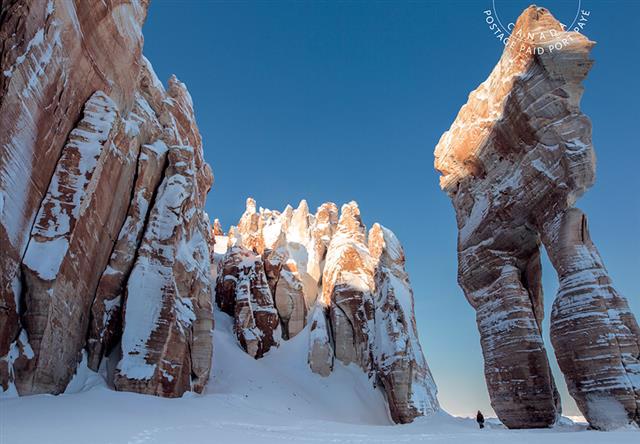 まさに巨人のズボンのようなこのアーチは、カナダ北極圏のヌナブト準州、バフィン島のアークティック・ベイ Arctic Bay から90Kmほど離れた場所にあり、ボートで4〜5時間もかかるのだそうです。 人の住む集落もないエリアなので、さすがにGoogle Mapにも出ていません。