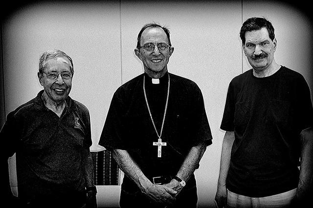 Bishop Mark Bartosic with the CMCS cofounders, (L) Deacon John Rangel and (R) Mr. Frank J Casella. (Photo by Richard Mantoan). |