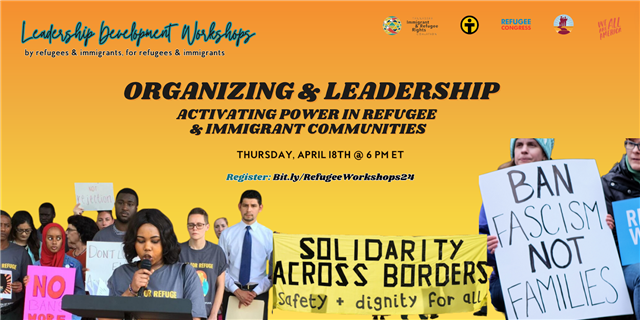 The Refugee Leadership Development Program provides bi-monthly workshops to refugee and immigrant organizers across the United States. Led by refugee and immigrants for refugees and immigrants, this training series is an opportunity to learn more about advocacy tactics being used to advance pro-refugee/pro-immigrant policy on the state and national levels, story-telling and narrative shifting, and connecting with resources and local networks to build more welcoming and inclusive communities. Register here. |