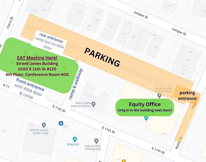The August EAT Meeting will be held at the Street Jones Building, 1000 East 11th St, Suite #120, 4th Floor, Conference Rm 400A.