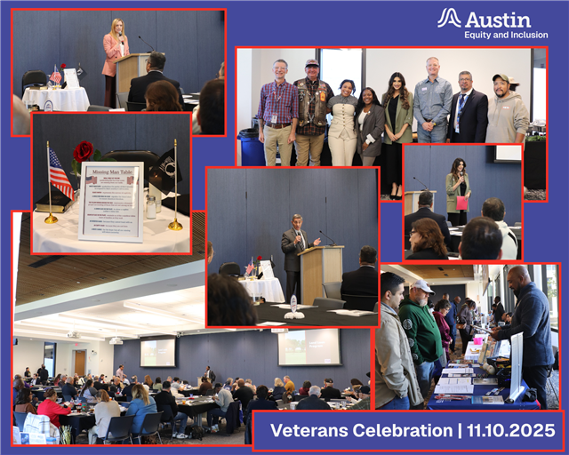 ️ A heartfelt Veterans Day Celebration was hosted by Austin Equity and Inclusion - Human Rights Division. We were proud to have welcomed over 100 veterans, City staff, community members, and local partners. Special thanks to City Manager T.C. Broadnax, and Councilmember Paige Ellis for their words of gratitude, to Chief of Staff Genesis Gavino, and to our keynote speaker, Thomas Palladino, Executive Director of the Texas Veterans Commission, for joining us in this meaningful tribute.