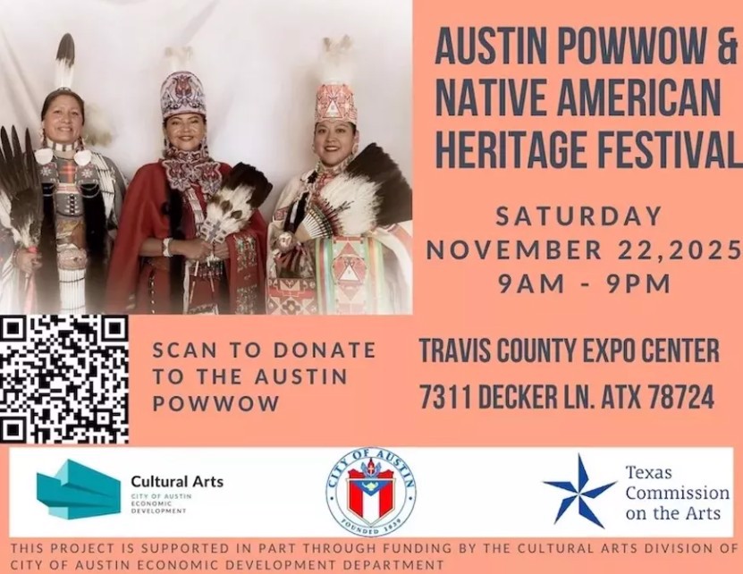 Join the Annual Austin Powwow and Native American Heritage Festival—the largest one-day powwow in the country and a cherished Texas tradition for over 30 years. With more than 15,000 attendees, 300+ dancers, and 100+ Native artists, food vendors, and craftspeople, this vibrant celebration brings together communities from across the country for a day of culture, connection, and creativity. Enjoy traditional and contemporary Native American music, dance, food, and art in a family-friendly atmosphere that welcomes everyone.