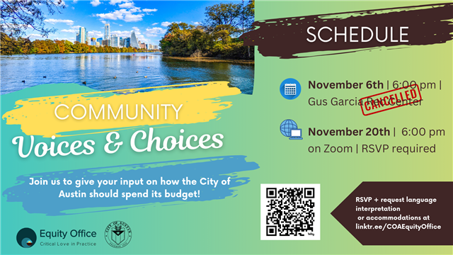 The JIC Community Voices + Choices event for November 6th at Gus Garcia Rec Center is CANCELED due to unforeseen circumstances.