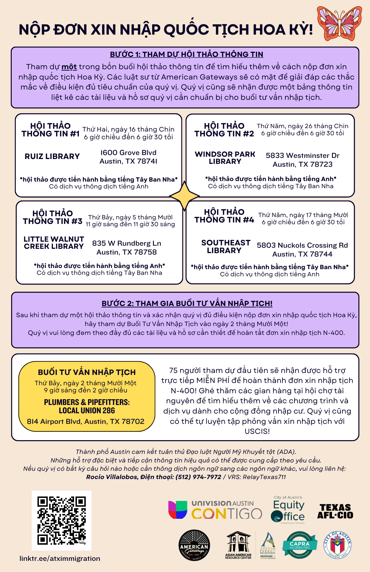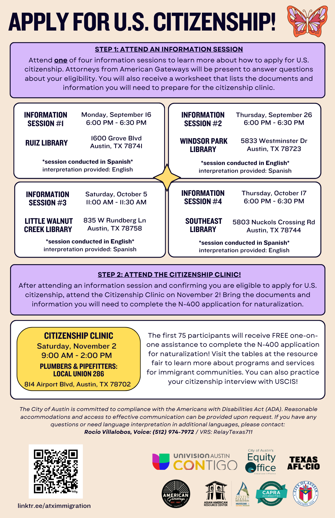*Please plan to attend an information session prior to the citizenship clinic. The information sessions will go over what information and documents you need to prepare in advance of the citizenship clinic.
