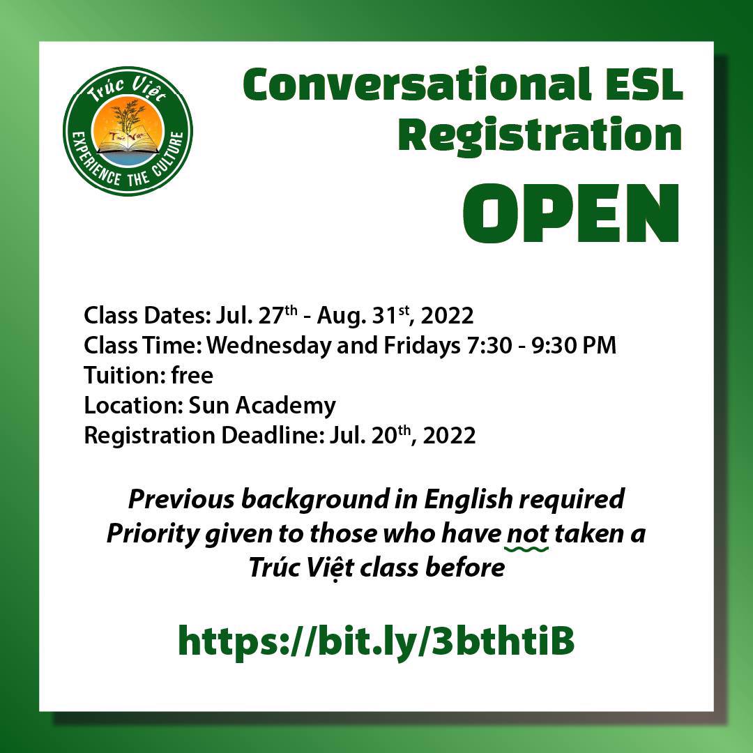 Trúc Việt is proud to announce the opening of our Conversational English as a Second Language (ESL) class. Our goal for this class is to accommodate Vietnamese people working in service-based industries who cannot attend our regular Saturday classes. We aim to create an environment where they can hone their English conversation skills for when they speak with their clients and customers.