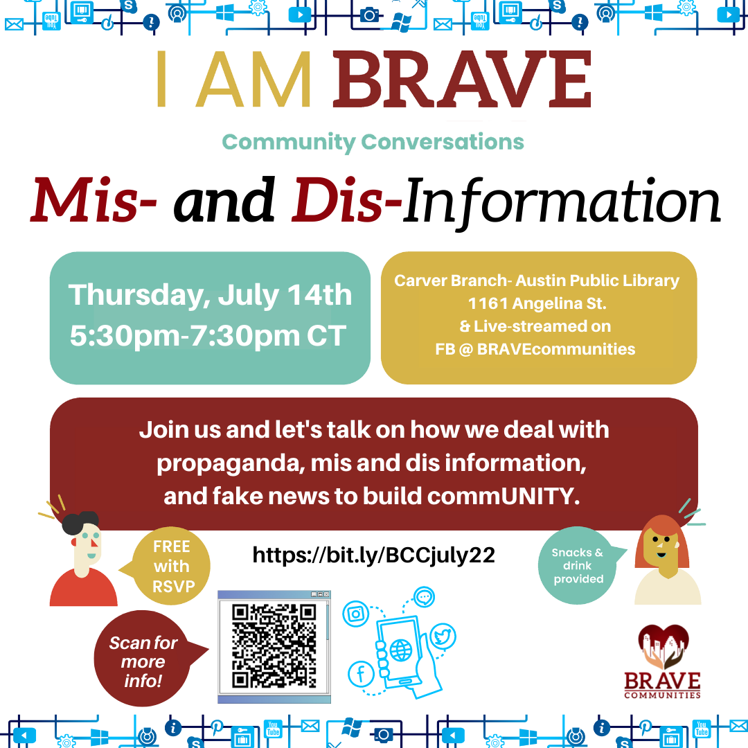Mis- and Dis- information poses fundamental threats to the way news, science, politics, and social issues are communicated. And, through digital communication, false information is disseminated at rapid rates across the globe. Sowing falsehoods increases political polarization and potentially infringes on the democratic process. Join us as we talk about how to deal with propaganda, mis and dis information, and fake news to build community. And, how disinformation continues to pose a threat to already vulnerable populations with existing forms of discrimination.