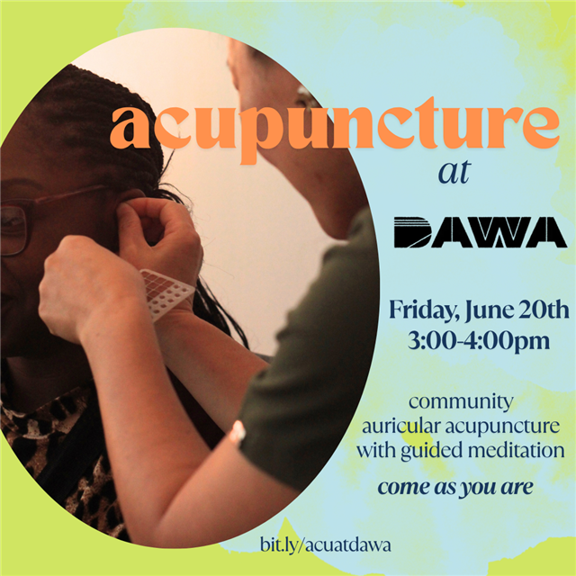 After a brief introduction and sign in's, this wellness event with begin with a short guided meditiation. Acupuncture will then be administered and participants will have the opportunity to relax with needles for up to 40 minutes. We can also offer non-needle alternatives. The event will conclude with a short reflection and optional share-out. Register here.