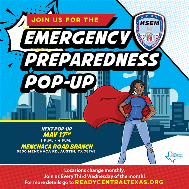 The City of Austin’s Office of Homeland Security and Emergency Management (HSEM) will host monthly Emergency Preparedness Pop-Up events in each of Austin’s City Council Districts throughout 2023. These events are designed to help equip Austinites with the information, tools and resources needed in emergency situations. Community members are invited to attend these three-hour open house style events.