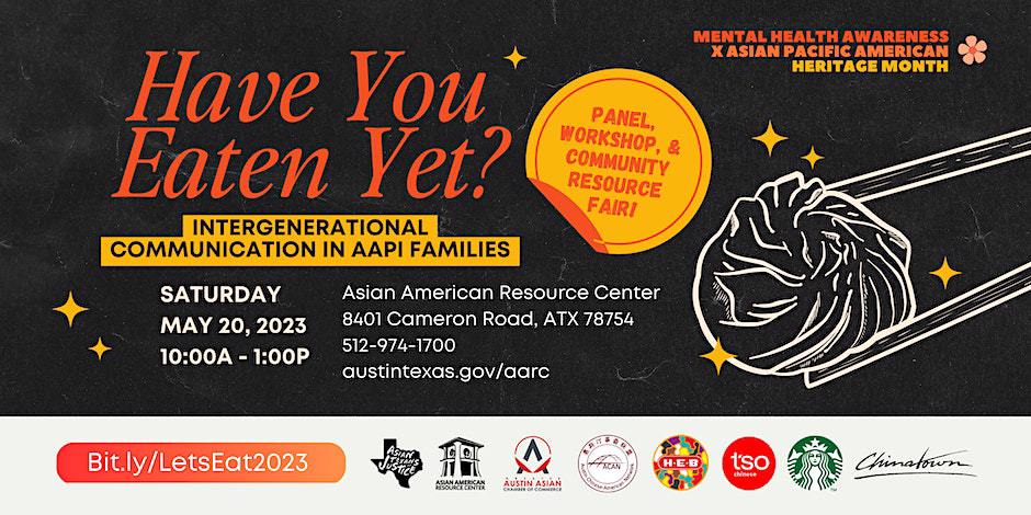 This event will bring together multiple generations of the AAPI community to talk about how to effectively communicate and support one another. The event will consist of a panel discussion, workshop, and community resource fair. Accompanied by HEB Gift Card door prizes, Starbucks coffee, and lunch from Tso’s Chinese Takeout and Delivery.