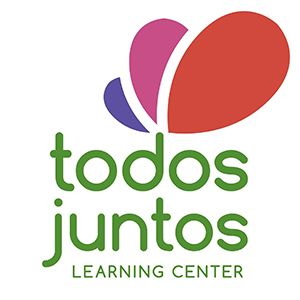 [Image Description: A logo with a white background. There are three petal shapes that are fanning out like a flower. The smallest is purple, then pink, with the largest being orange. The petals are sitting on the text in green, "todos juntos learning center."] |