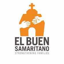 [Image Description: The logo for El Buen Samaritano. There is a graphic that is supposed to represent a church entrance in the background with a cross at the top of the building. Superimposed onto the graphic are two hands reaching towards each other, one from the left and one from the right. Beneath the graphic, it reads "El Buen Samaritano: Strengthening Families."] |