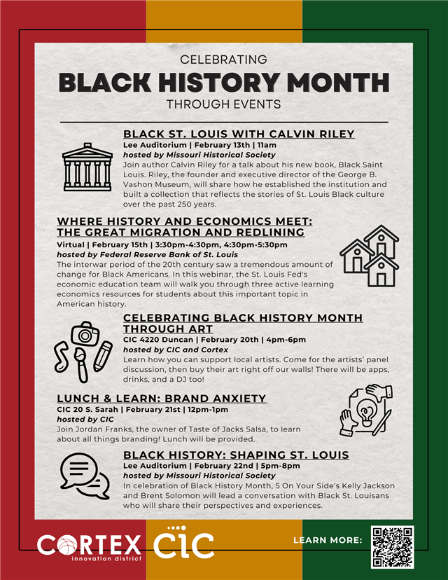 In celebration of Black History Month, we have put together a calendar of events both in the District and in the region. You can learn more about the featured events and find additional opportunities on the Cortex District calendar.