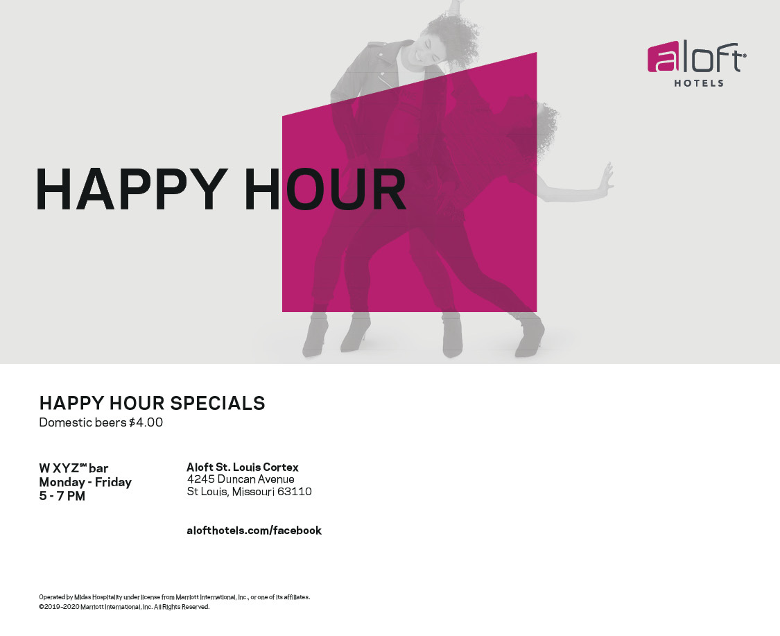 Enjoy happy hour at Aloft's WXYZ bar Monday-Friday from 5-7 p.m.