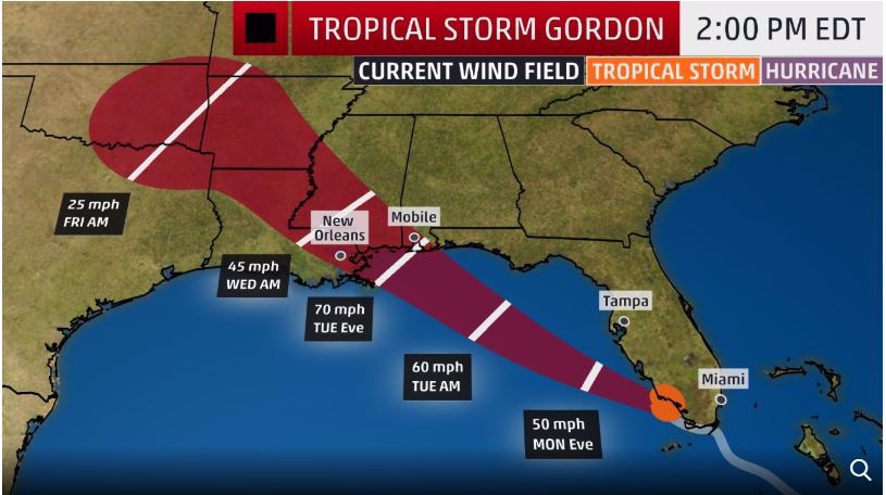 Tropical Storm Gordon approaches Gulf Coast