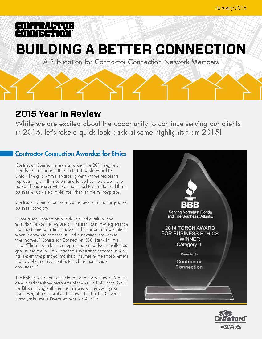 As we begin another exciting year at Contractor Connection, be on the lookout for announcements regarding new program requirements and enhancements to our value-add program coming in 2016. We will also soon announce the opening of registration for our Conference & Expo in Las Vegas.