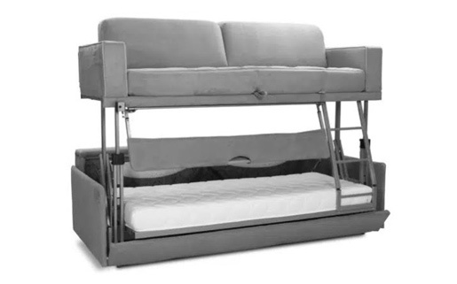 This unassuming Dormire Couch unfolds into a bunk bed setup, resulting in an enormously efficient use of space. Most reviewers say the unfolding mechanism is surprisingly easy to use. The upper bunk gets locked in place with the ladder for safety.
