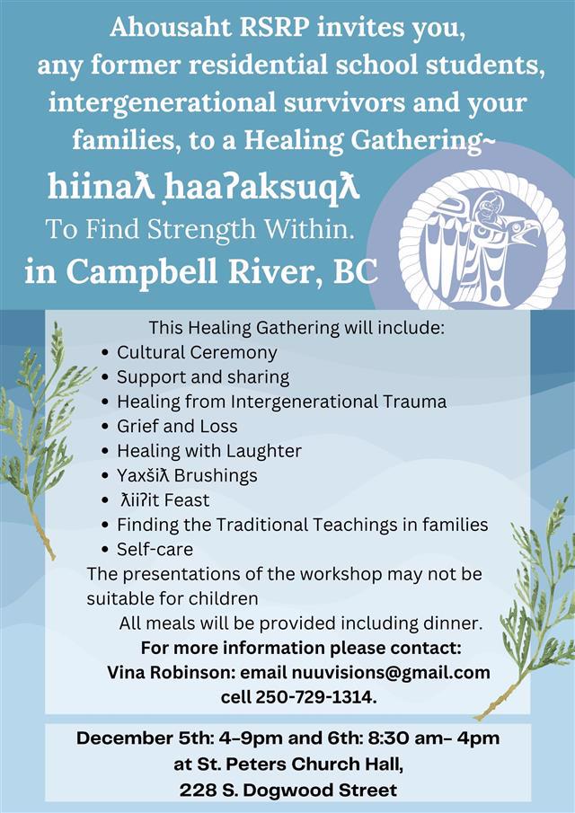 Ashousaht RSRP hosts a Healing Gathering in Campbell River |