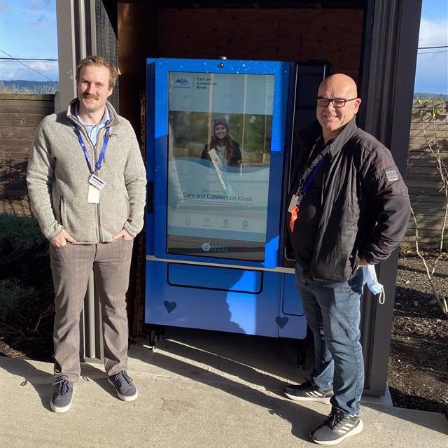 New Care and Connection Kiosks are outside the emergency departments at North Island Hospital - Campbell River and Nanaimo Regional General Hospital providing a variety of free harm reduction supplies 24/7. The self-serve machines dispense plainly packaged items including condoms, wound care supplies, naloxone kits, take-home drug testing strips, and syringes and safe disposal containers.