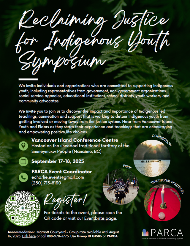 Come join us in the traditional territory of the Snuneymuxw people, in Nanaimo, B.C., for an important gathering on Indigenous justice with a special focus on justice for Indigenous Youth who remain overrepresented in the youth justice system.
