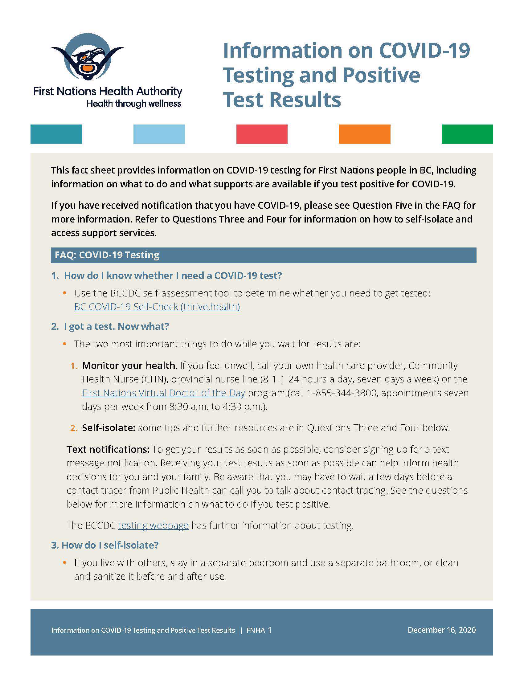 - FNHA - Information on COVID-19 Testing and Positive Test Results