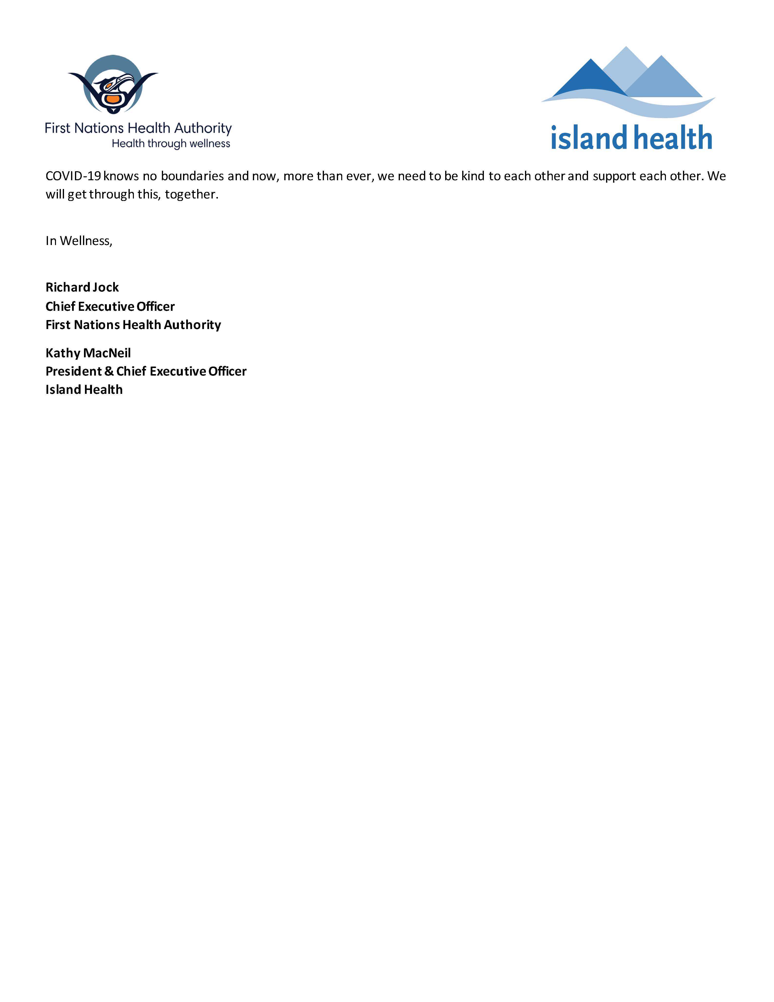 - FNHA and Island Health: Open letter regarding recent racist commentary