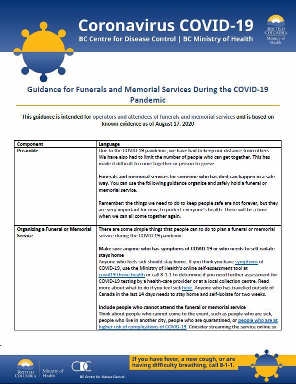 Guidance for Funerals and Memorial Services During the COVID-19 Pandemic |
