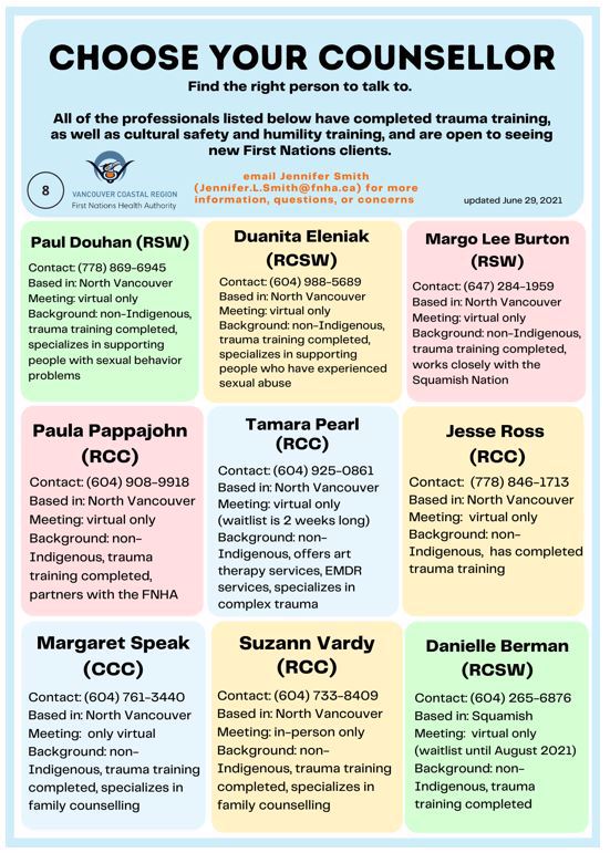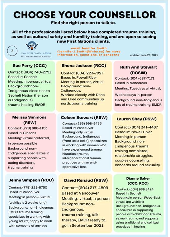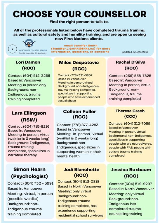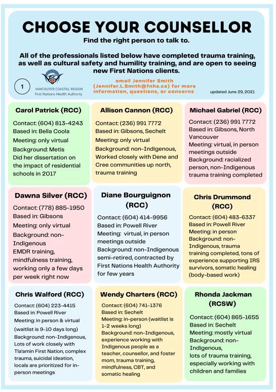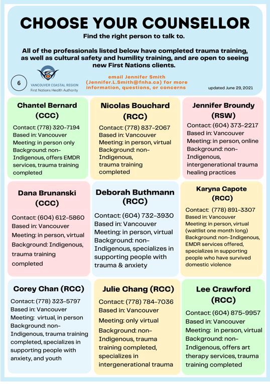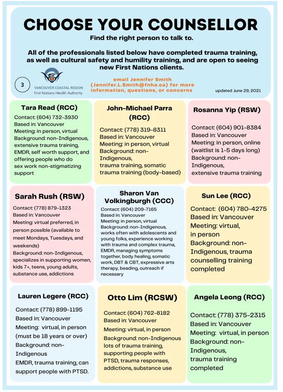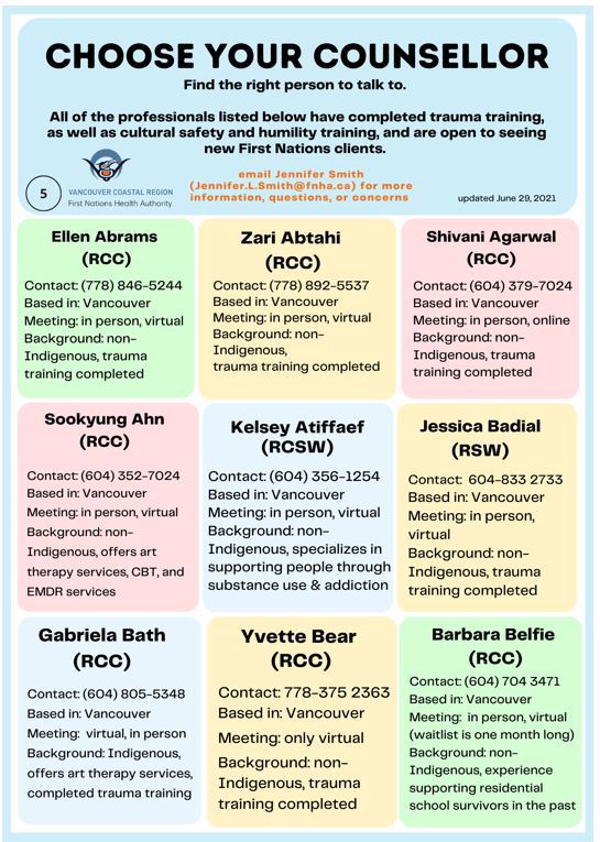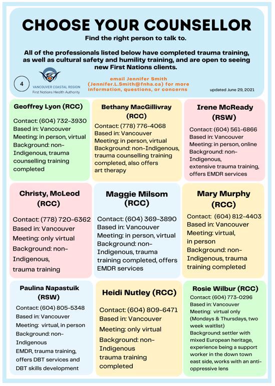An updated provider list is available for review (see below section “List of Counsellor – VC Region Specific”).