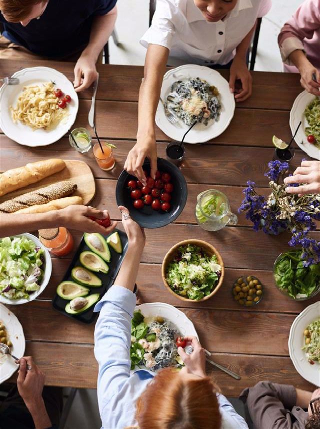 Enjoying the food and fellowship at Portico Café after worship?