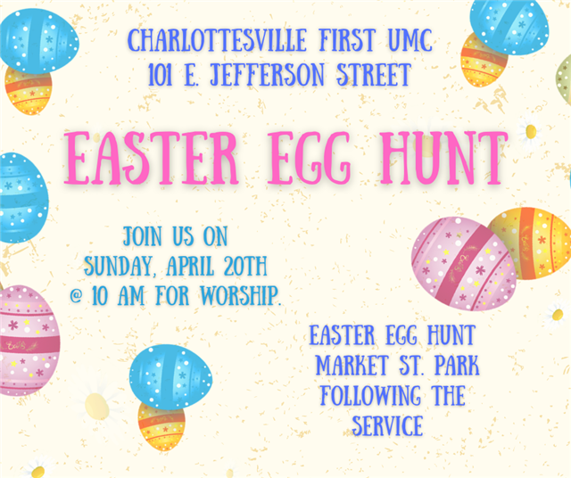 Celebrate Easter with an Easter Egg Hunt following service on Easter Sunday. We will meet across the street in Market Street Park.
