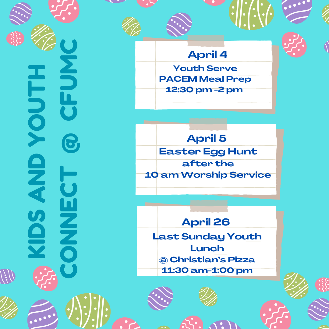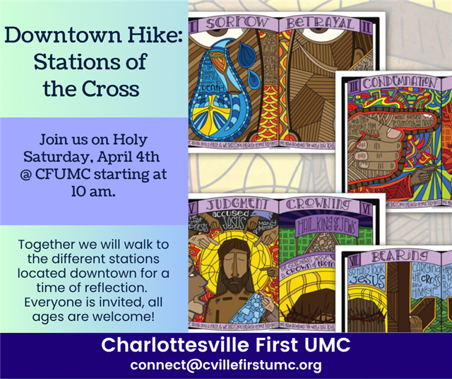 Join us on Holy Saturday at CFUMC starting at 10am. Together we will walk to the different stations for a time of reflection. Everyone is invited and all ages welcome.
