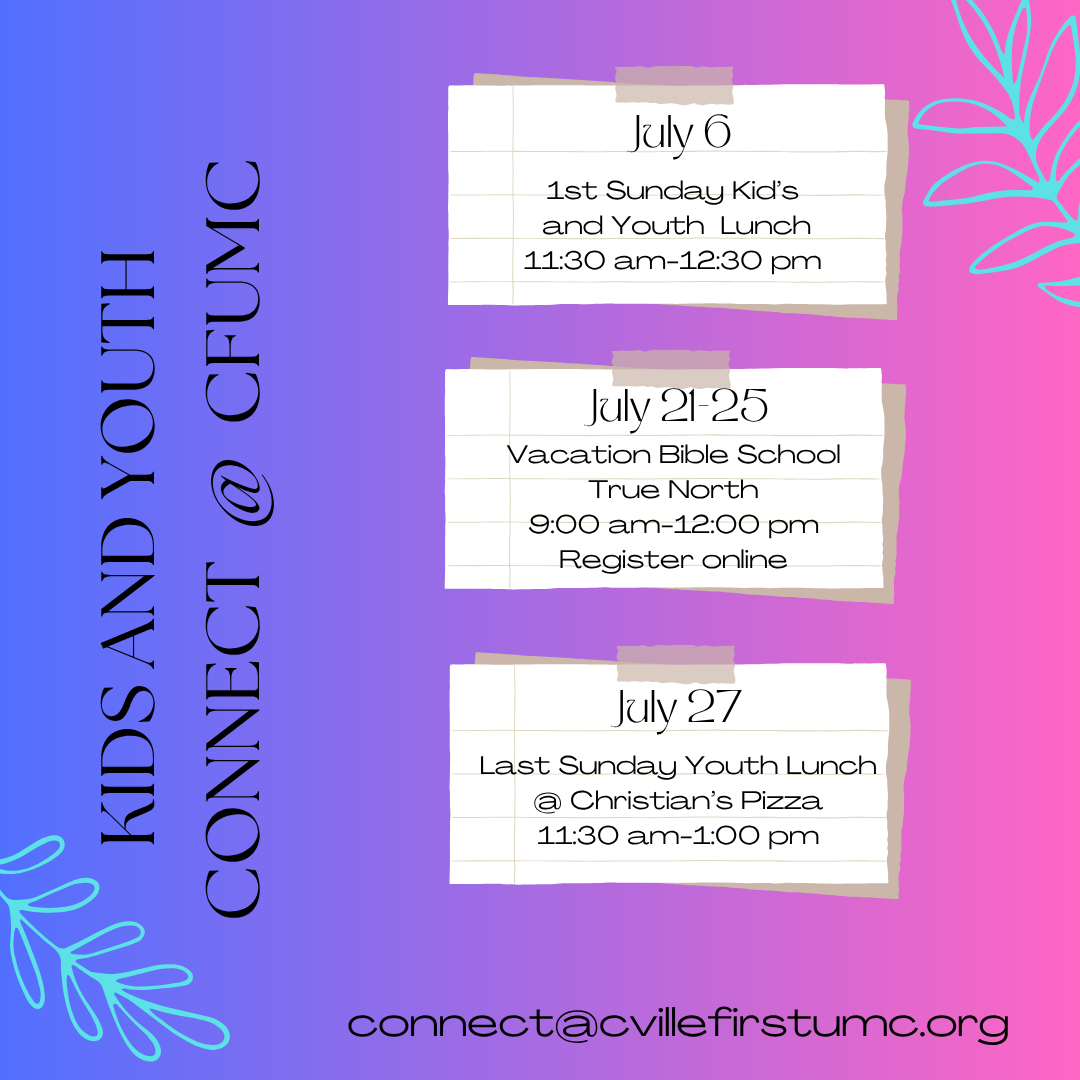 For more information contact: connect@cvillefirstumc.org or mariaplantz@cvillefirstumc.org