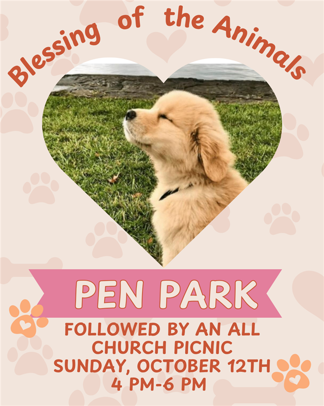 Join us on October. from 4-6pm at the Pen Park Shelter for the CFUMC Annual Potluck Picnic and Blessing of the Animals! Bring your pet, your friends, your friend’s pet and some good food to share! Come even if you don’t have a pet!
