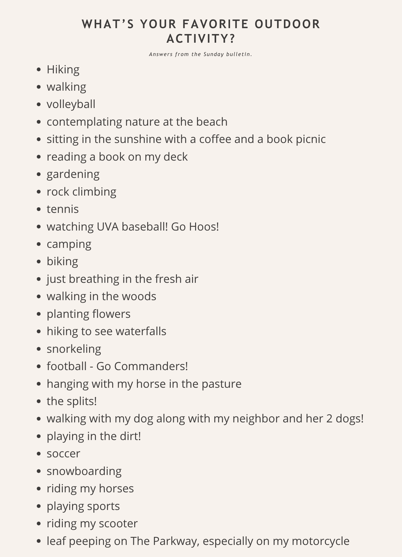 Each gathering begins with a brief reflection and prayer before we embark on our holy hikes. All ages are invited to participate.