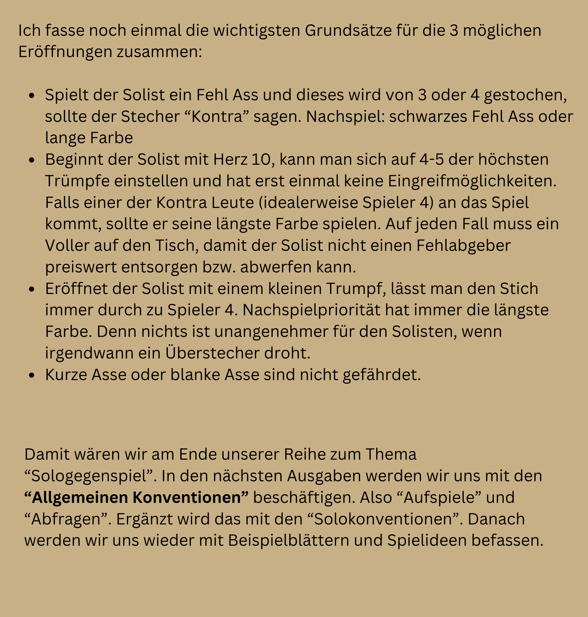 In der heutigen Ausgabe wird die Reihe "Sologegenspiel" abgeschlossen.