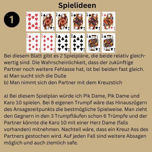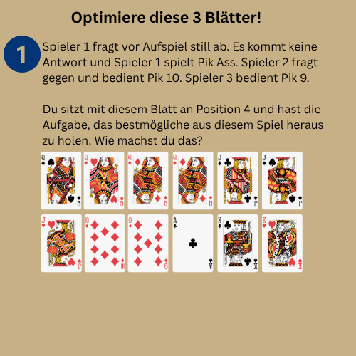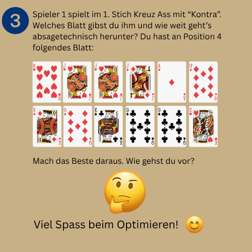 in dieser Ausgabe gebe ich zu den letzten 3 Grübelaufgaben meine Empfehlungen preis. Ziel der Aufgaben war es, unterschiedliche Spielpläne zu entwickeln unter dem Motto: