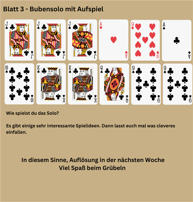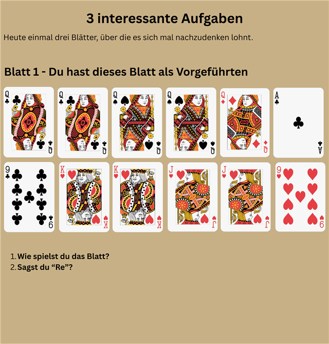 nach der schweren Kost mit dem Mittelspiel habe ich Euch heute wieder 3 Knobelaufgaben mitgebracht.