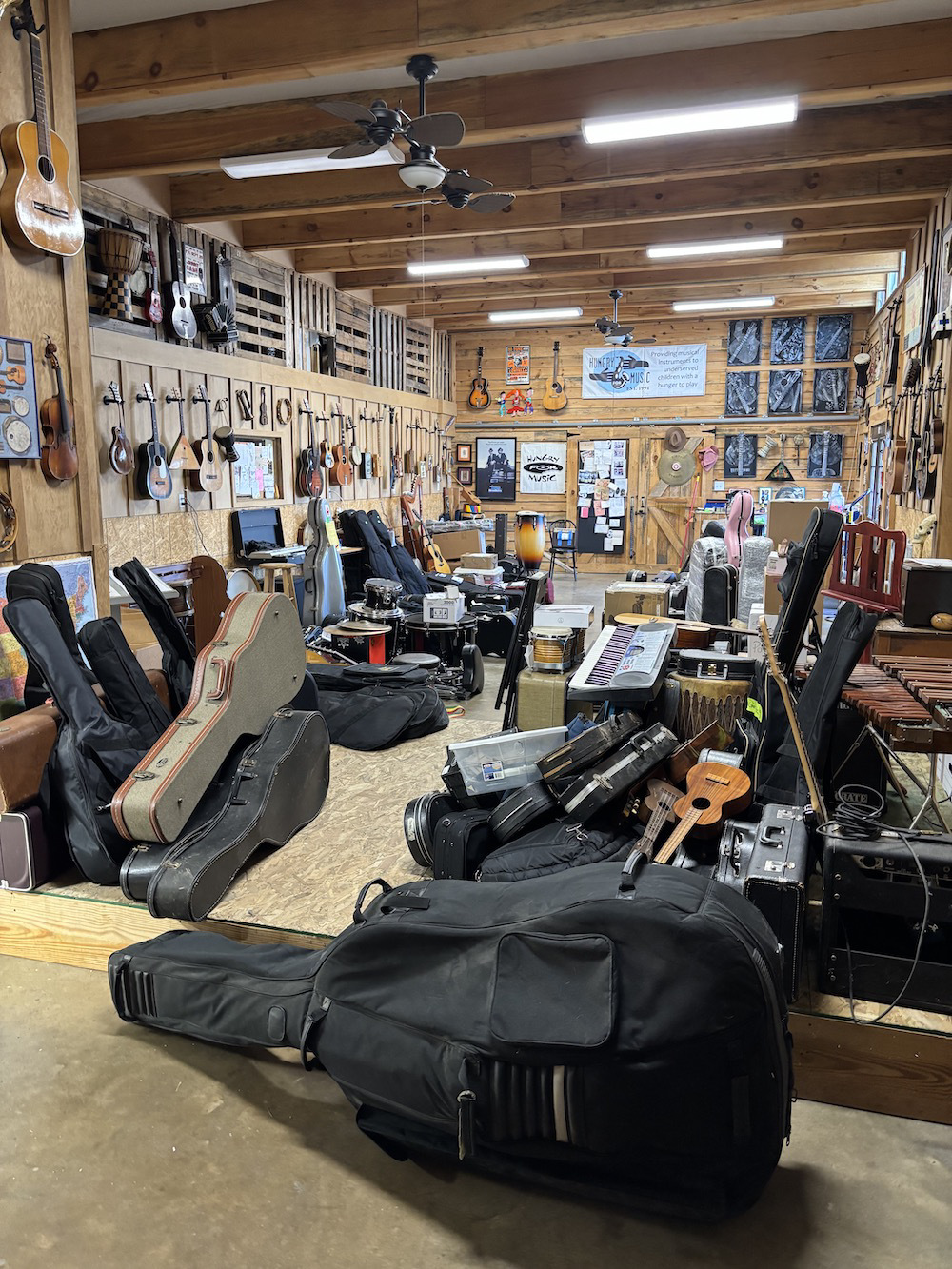 The middle warehouse at the Hungry for Music Distribution Center won’t be clear for long! We are grateful for the constant flow of music instruments in and out of our space.