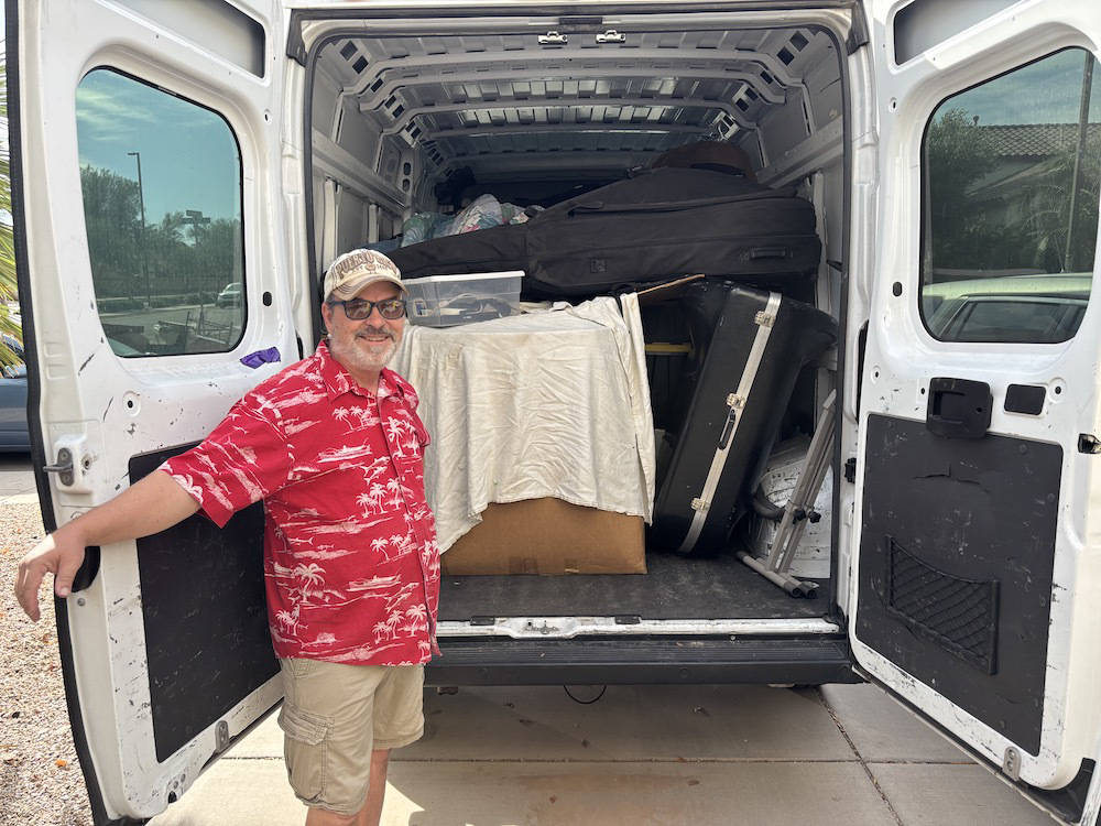 We just picked up a big load from his home in Gilbert, Arizona, including two upright basses, two tubas, five trombones, over a dozen flutes and clarinets! Wow!