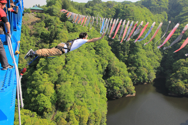• At Ryujin Suspension Bridge in Ibaraki Prefecture as you bungee jump into the gorge below